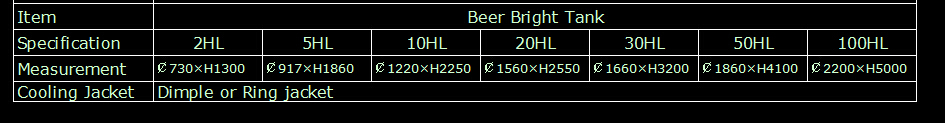 In order to get the matured and flavoured beer , it is very poluar to store the beer in the Beer Bright tank for longer time , and before selling you also can supplement the carbon dioxide (CO2) into the beer with the carbonation stone .