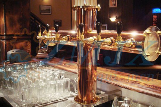 酒柱是啤酒設(shè)備當(dāng)中重要的組成部分,一方面,他能夠?qū)⑵【茝陌l(fā)酵罐中取出來(lái),更重要的一方面是,它能夠提供點(diǎn)綴整套設(shè)備的作用。酒柱的材質(zhì)分為不銹鋼、紫銅等。主要是根據(jù)整個(gè)啤酒屋的裝修風(fēng)格來(lái)定調(diào),起到畫(huà)龍點(diǎn)睛的作用?,F(xiàn)在國(guó)內(nèi)越來(lái)越多的消費(fèi)者越來(lái)越多的關(guān)注就餐環(huán)境跟格調(diào),特別是年輕人。因此酒柱也越來(lái)越受到酒店、酒吧經(jīng)營(yíng)者的青睞!
