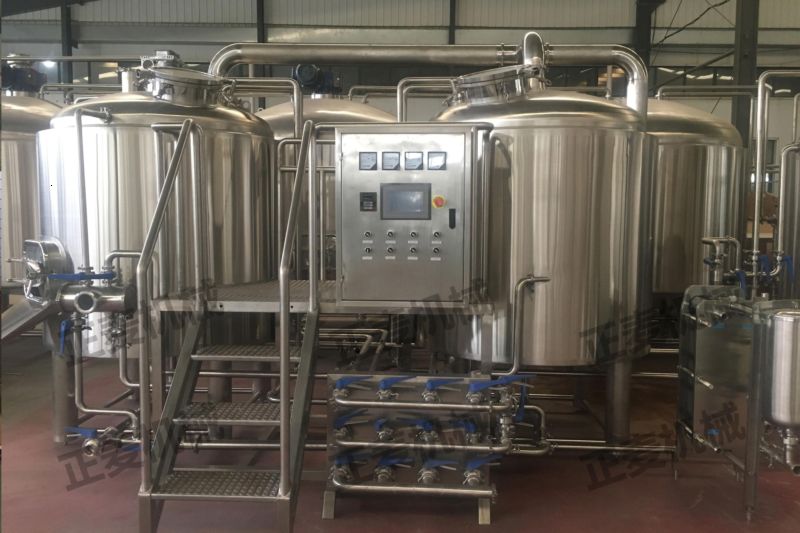 糖化系統(tǒng)是有糖化煮沸鍋、過(guò)濾槽、漩渦沉淀槽及工藝管道組成;糖化煮沸鍋為“蒸汽加熱式;電加熱式;燃?xì)饧訜崾健苯M成。罐體為雙層保溫方式“巖棉或聚氨酯”材料。加熱面積足夠達(dá)到麥汁煮沸蒸發(fā)量,能夠有效阻止熱能耗的外泄。罐體內(nèi)部采用國(guó)際標(biāo)準(zhǔn)不銹鋼精加工而成;外部采用不銹鋼或紫銅鏡面板組成,古樸典雅的外觀造型;即釀出美妙佳釀還有藝術(shù)品的象征。糖化煮沸鍋?lái)敳考友b攪拌系統(tǒng)能使醪液均勻糖化;過(guò)濾槽頂部加裝耕刀系統(tǒng)保證醪液勻速過(guò)濾避免氧化。漩渦沉淀系統(tǒng);采用切線及離心力的作用能夠徹底的分離出多余的蛋白質(zhì)及雜質(zhì),達(dá)到成熟麥汁的純凈度。